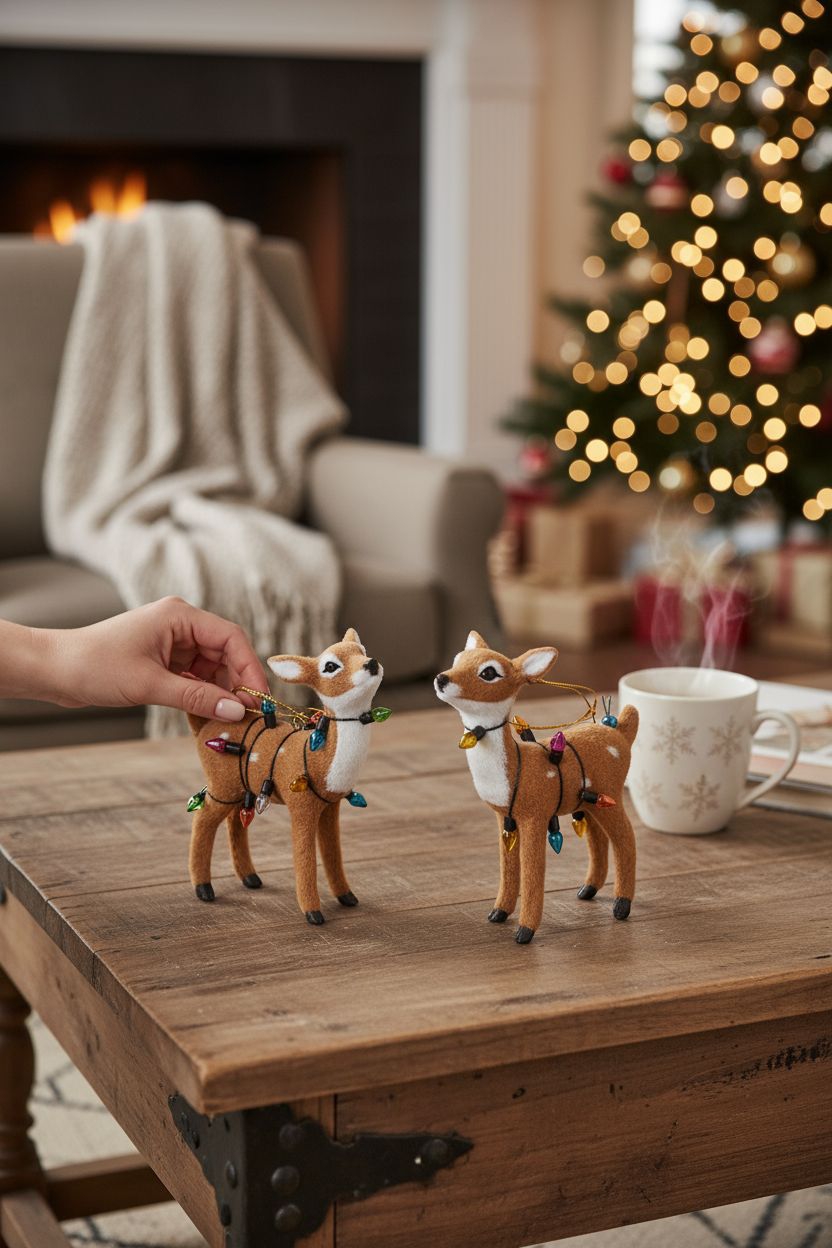 - Efekt kolorowych światełek – subtelna imitacja lampek sprawia, że sarenka wygląda jak rozświetlona świąteczną radością.
