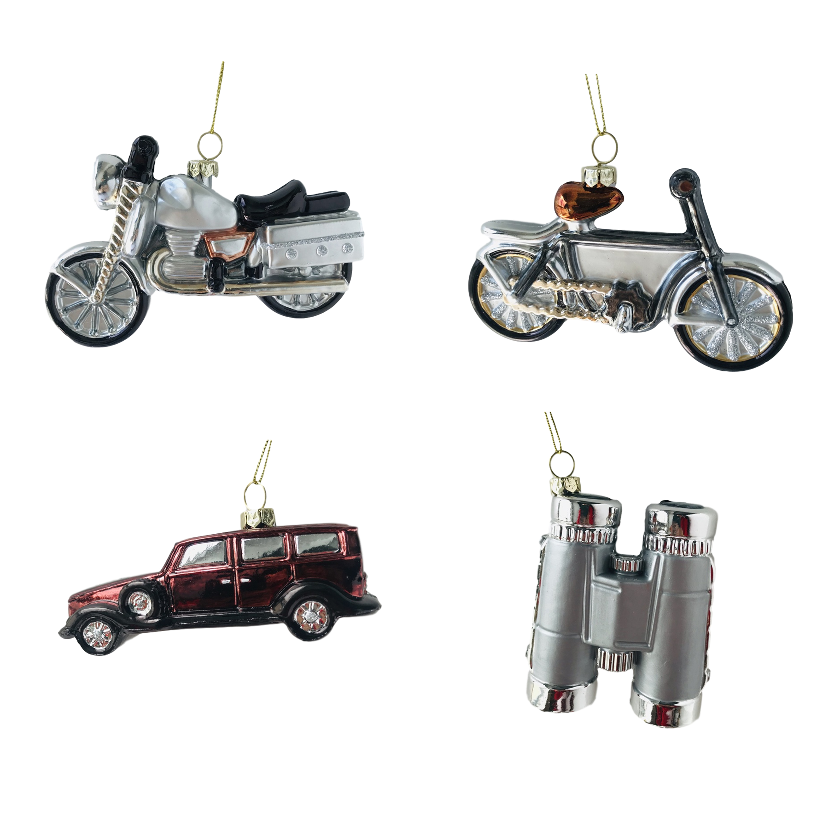 Bombki zawieszka retro MOTORBIKE 4 szt motocykl auto lornetka