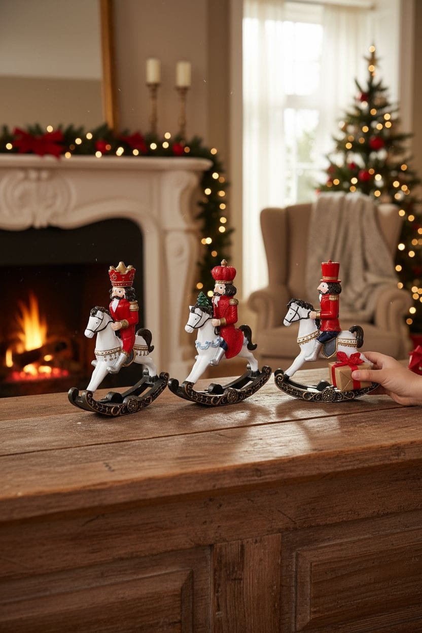 Dziadek do Orzechów na Koniku – Figurka Świąteczna z Koroną, Choinką i Złotymi Detalami