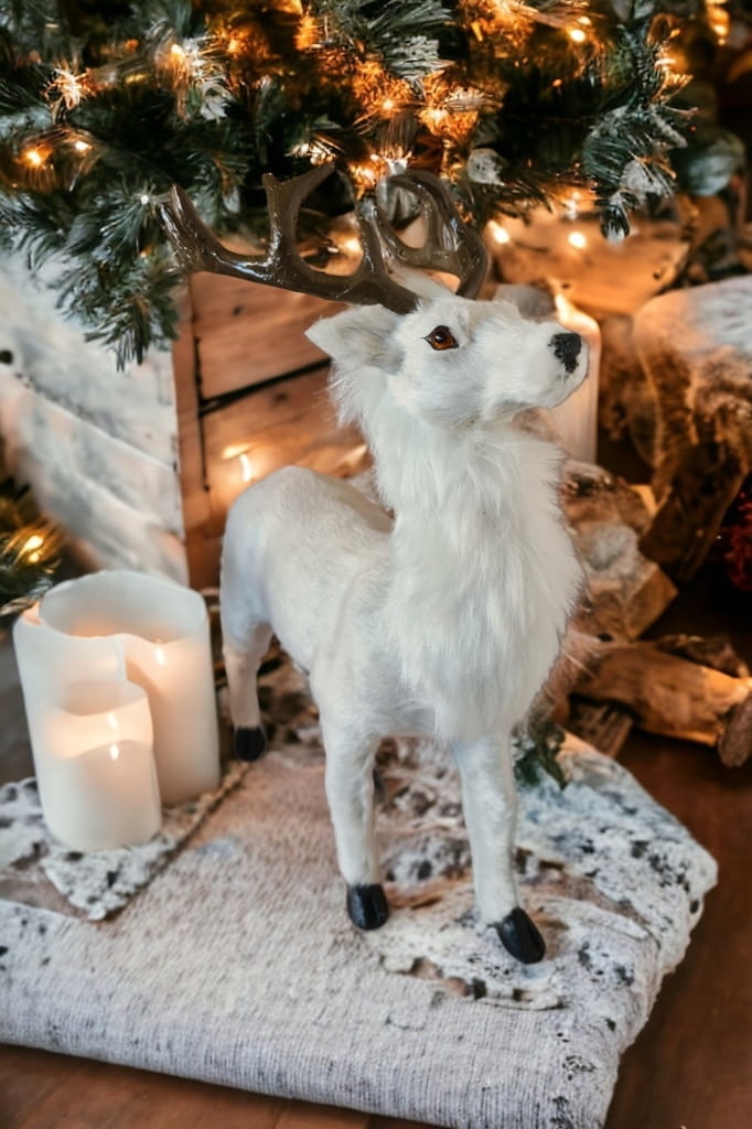 Figurka Jeleń Świąteczna Dekoracja Biała 29 cm