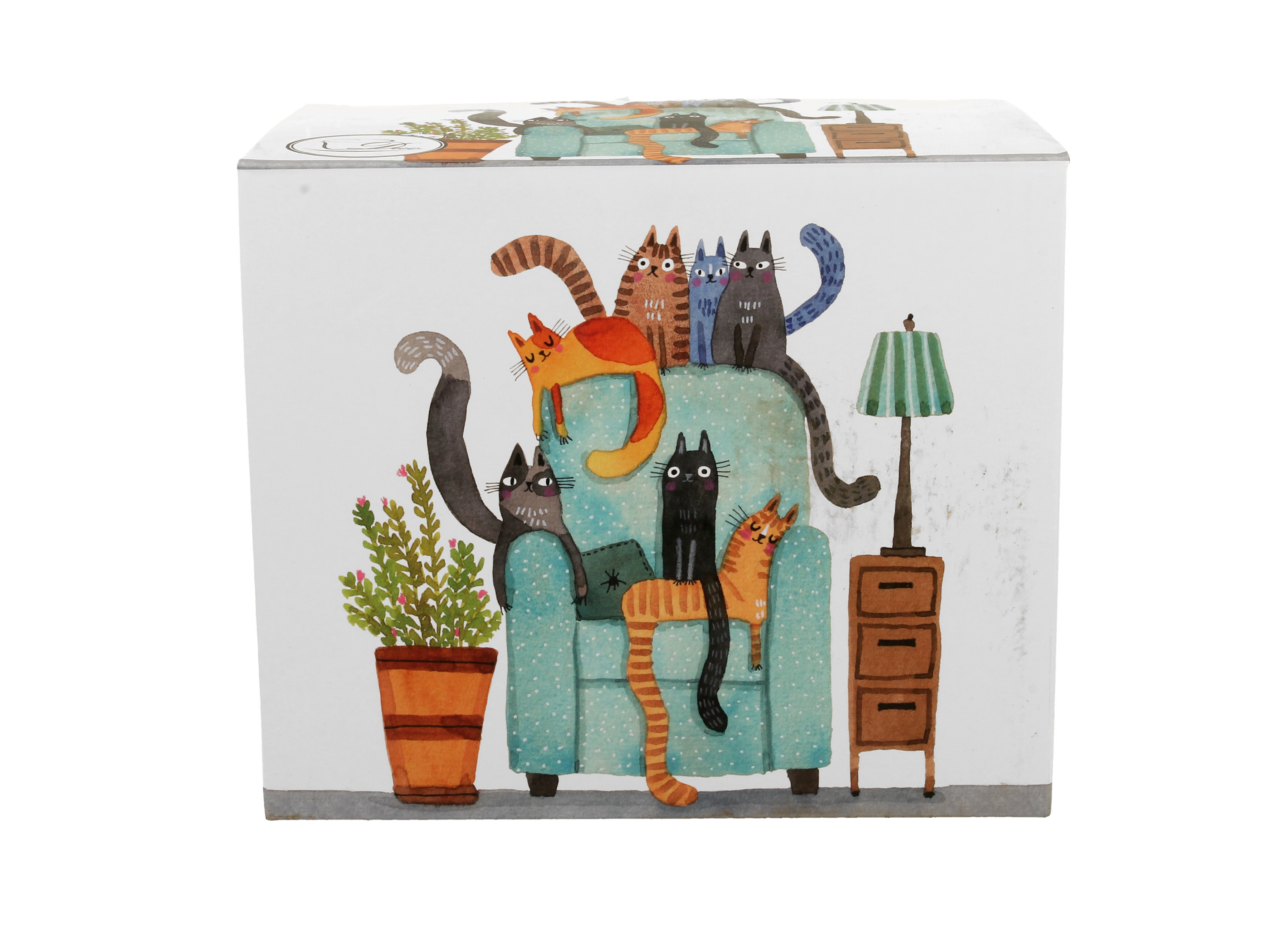 - Wyjątkowy design - wzbogać swój poranek lub popołudnie o koci urok dzięki grafice przedstawiającej piękne koty w komfortowym fotelu. Przykuje wzrok i doda uroku Twoim przerwom.