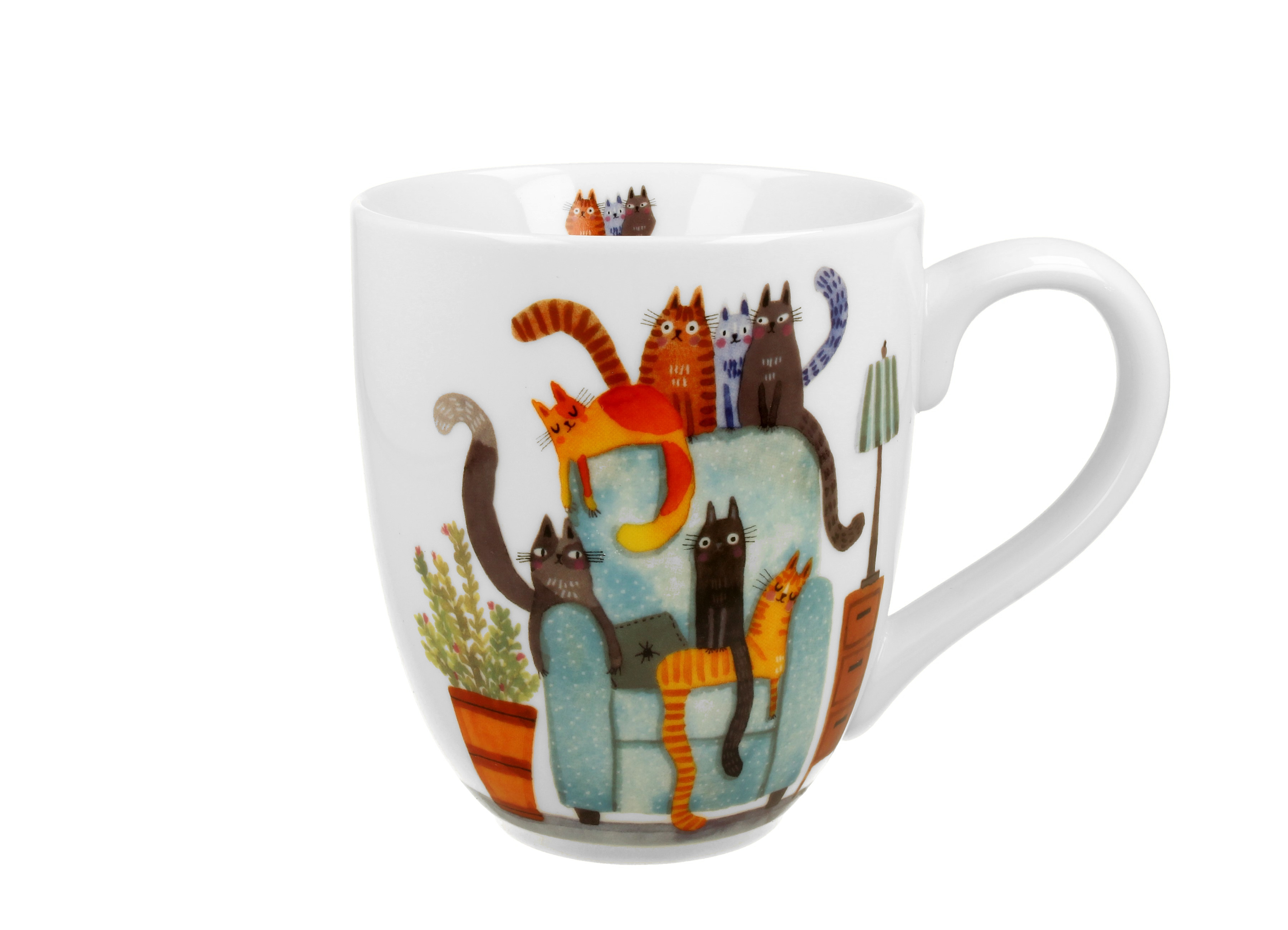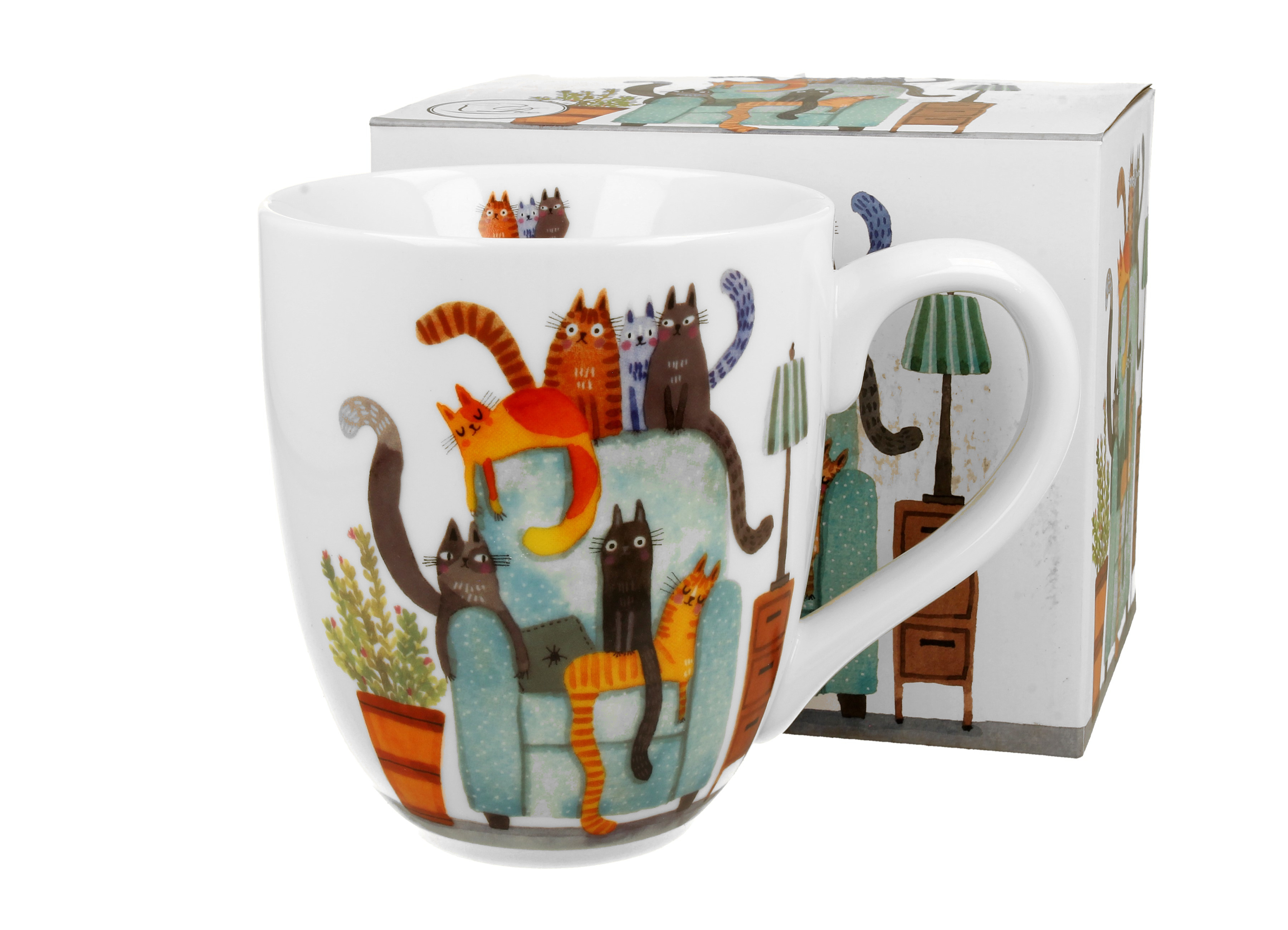 Zakochaj się w tym niezwykłym Kubku XXL Koci Świat KOTY NA FOTELU i ciesz się pełnym kociątkowego uroku i stylu doznaniem podczas codziennych przerw na filiżankę ulubionego napoju. To również idealny prezent dla miłośników kotów w Twoim życiu!