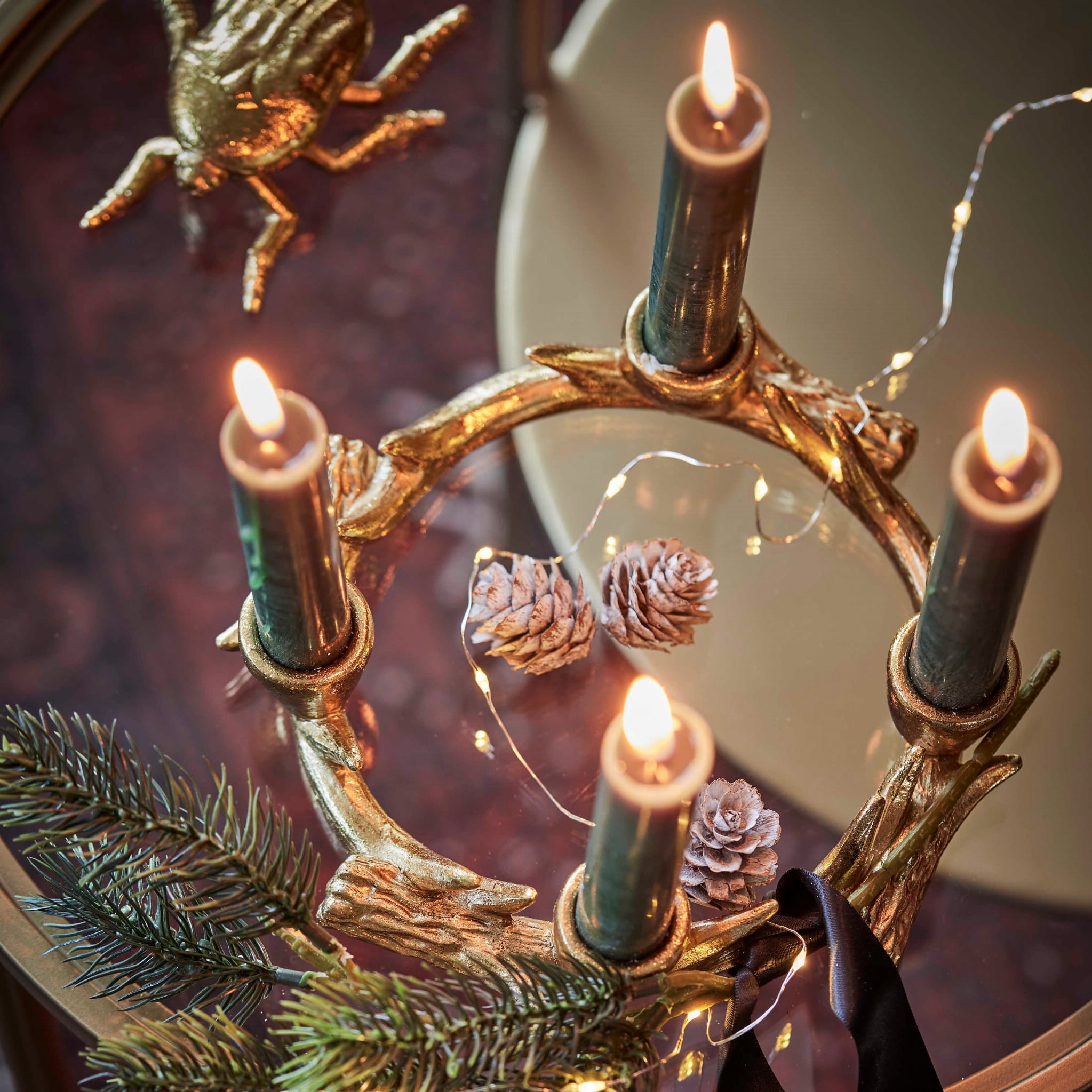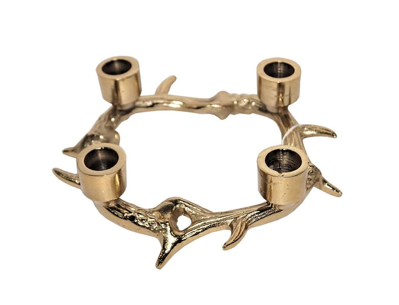 Metalowy złoty świecznik na 4 świece tapers – motyw rogi jelenia