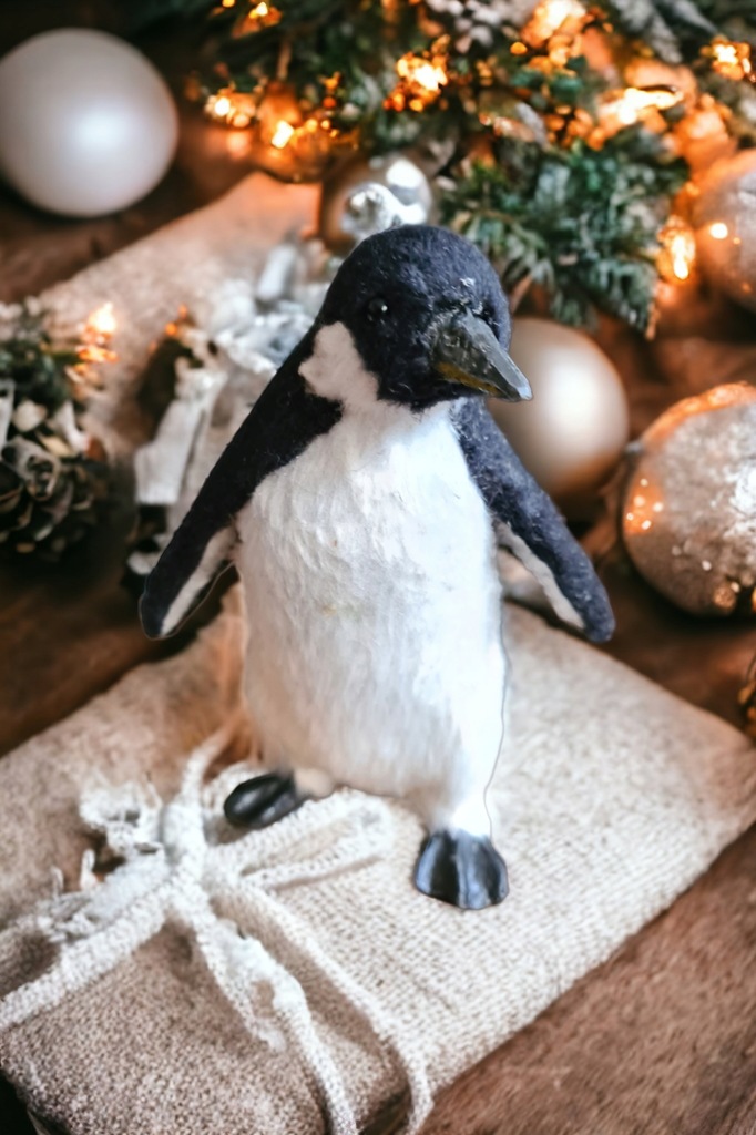 Wprowadź radosny akcent świąteczny do swojego domu dzięki uroczej figurce pingwina. Pokryty miękkim materiałem i utrzymany w klasycznej biało-czarnej kolorystyce, ten sympatyczny maluch zachwyca nie tylko wyglądem, ale też wrażeniem przytulności, jakie tworzy.