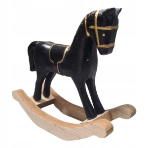 Vintage drewniany koń na biegunach czarno - złoty mały