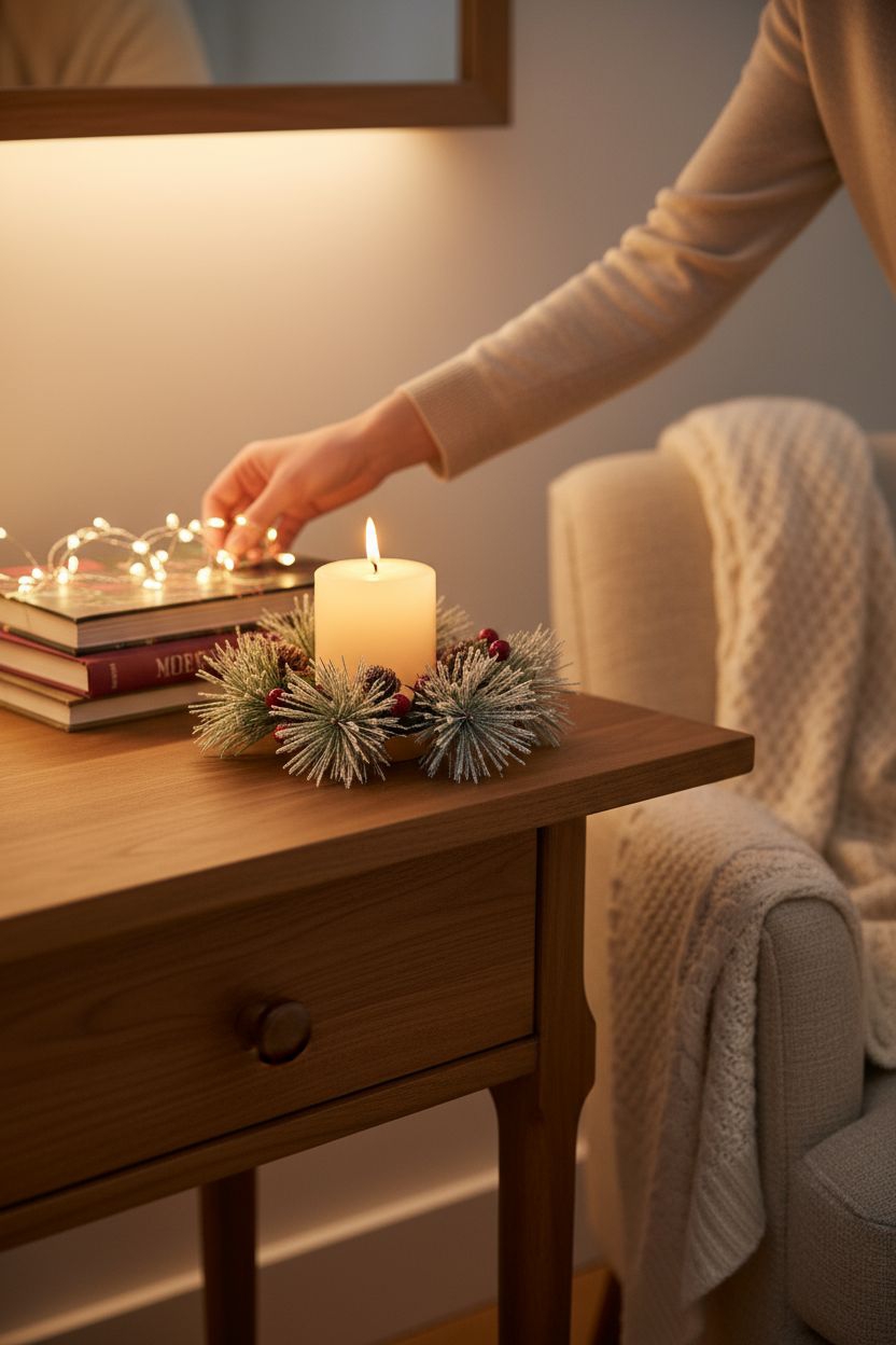 Wianek świąteczny na świecę 20 cm – ozdoba stołu, stroik bożonarodzeniowy