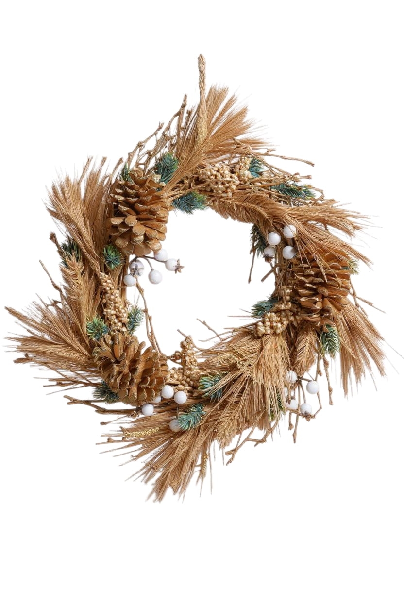 - Naturalny styl, który nigdy nie wychodzi z mody – suszone kłosy, szyszki, jagody i zieleń tworzą kompozycję, która pasuje do każdego wnętrza.