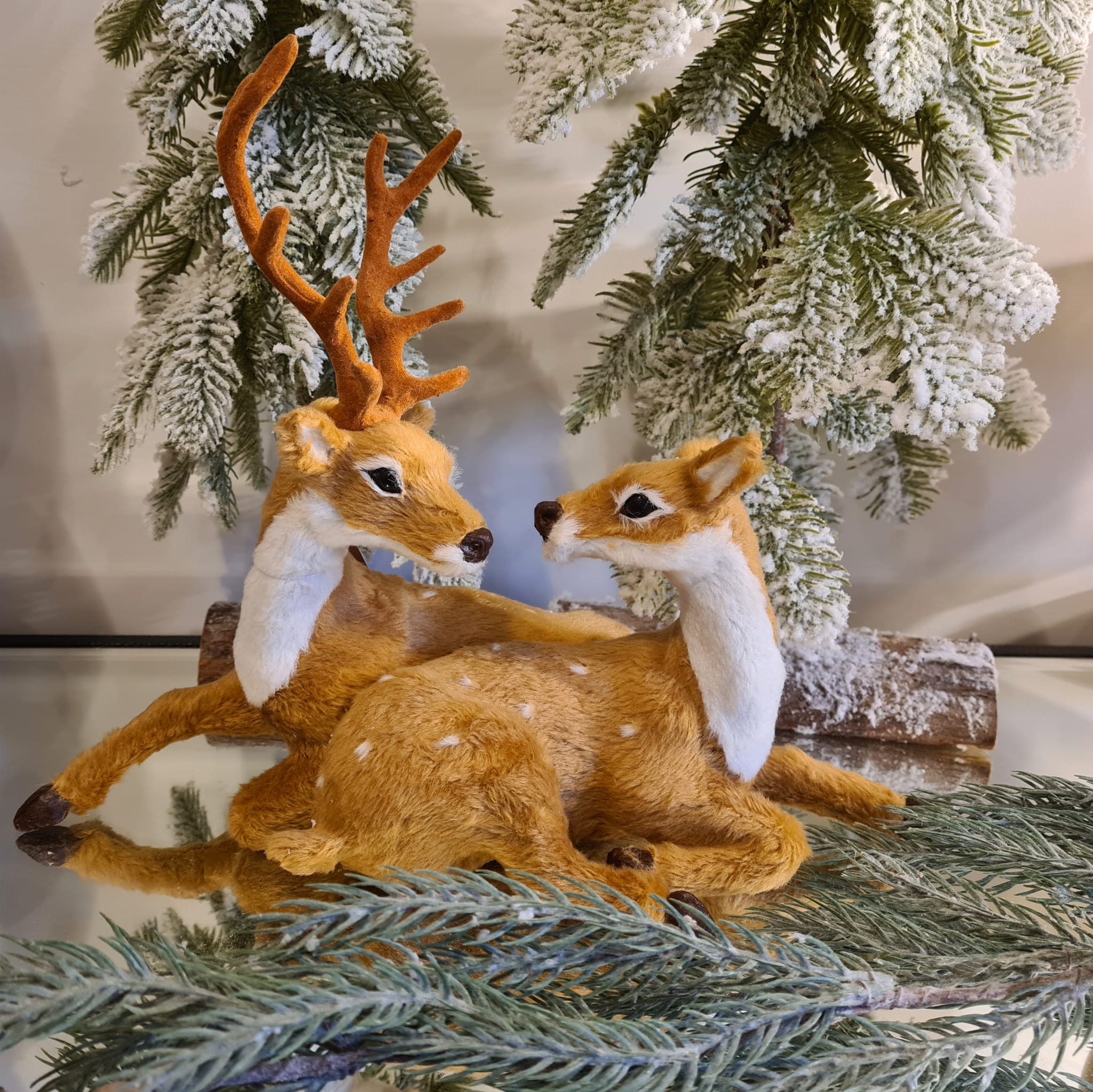 Zakochana Para – Jeleń i Sarna z Futerkiem Świąteczna Dekoracja 25,5 cm