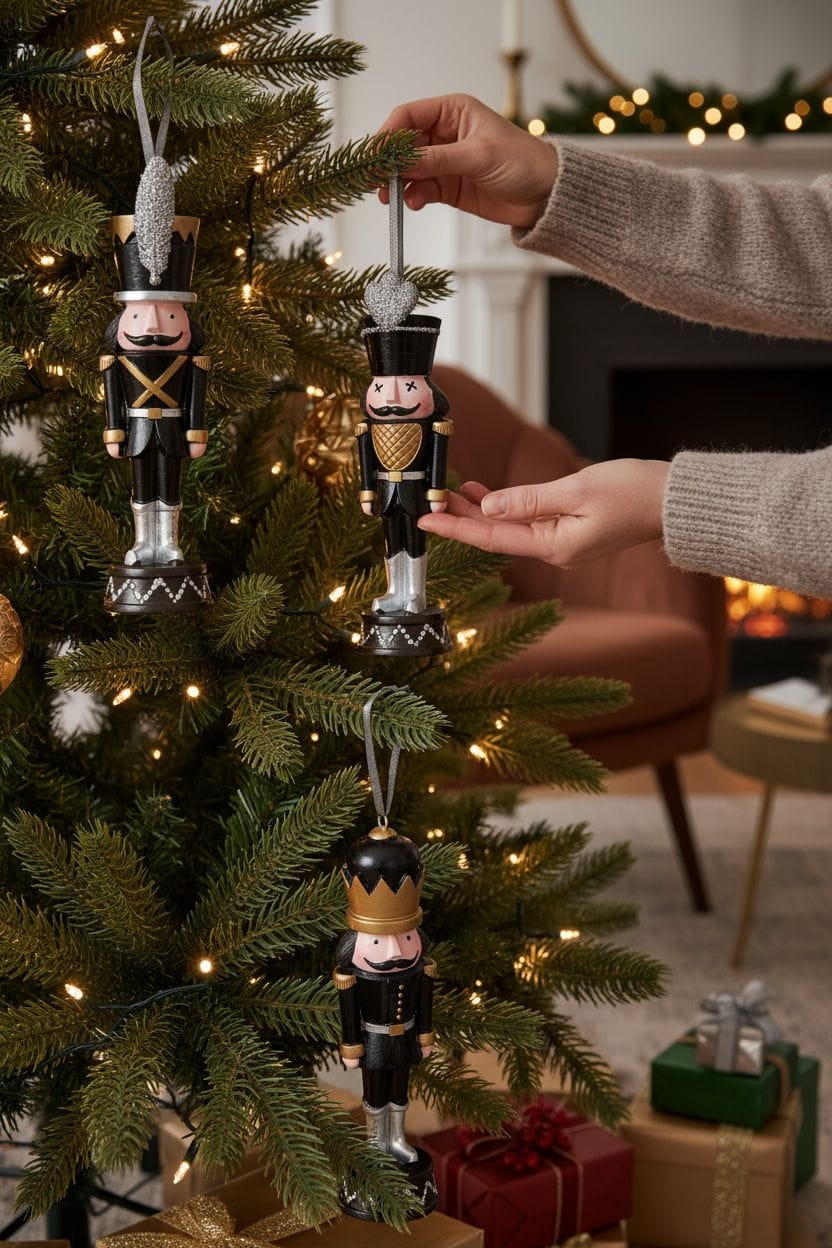 Zawieszka Dziadek do Orzechów – Figurka Świąteczna Czarno-Złota z Brokatem